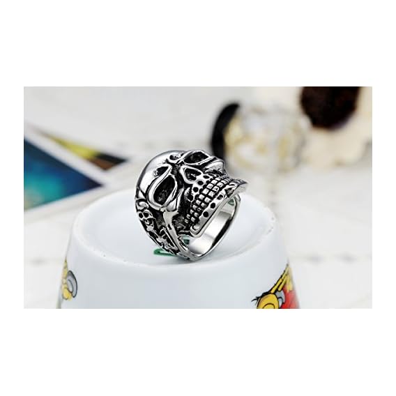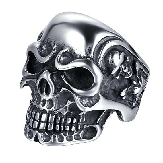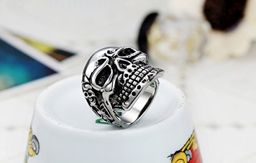 JewelryWe Herren Edelstahl Ring Biker Totenkopf Schädel Edelstahlring